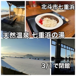 3/1に閉館するって寂しいなぁ…。北斗市七重浜にある「天然温泉 七重浜の湯」に伺い 道南唯一無二の温泉を堪能し その後「お食事処よりみち」にてカレーライスをキメてきました!