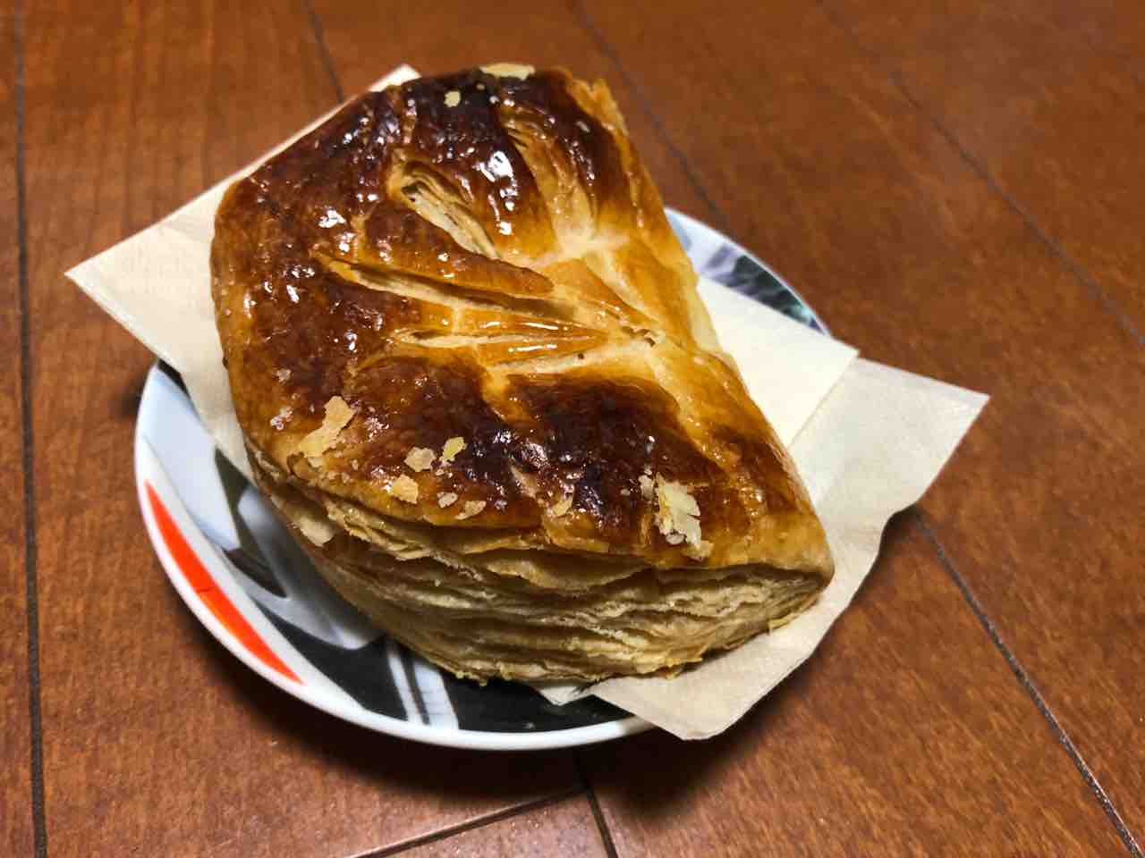 生地はパリッとサクッとしており期待を膨らませ食べてみると… カスタードクリームとリンゴが入ってますが… リンゴ部分があんまり… うーん… 微妙かもしれませんね…。個人的に好みのものではありませんでした。