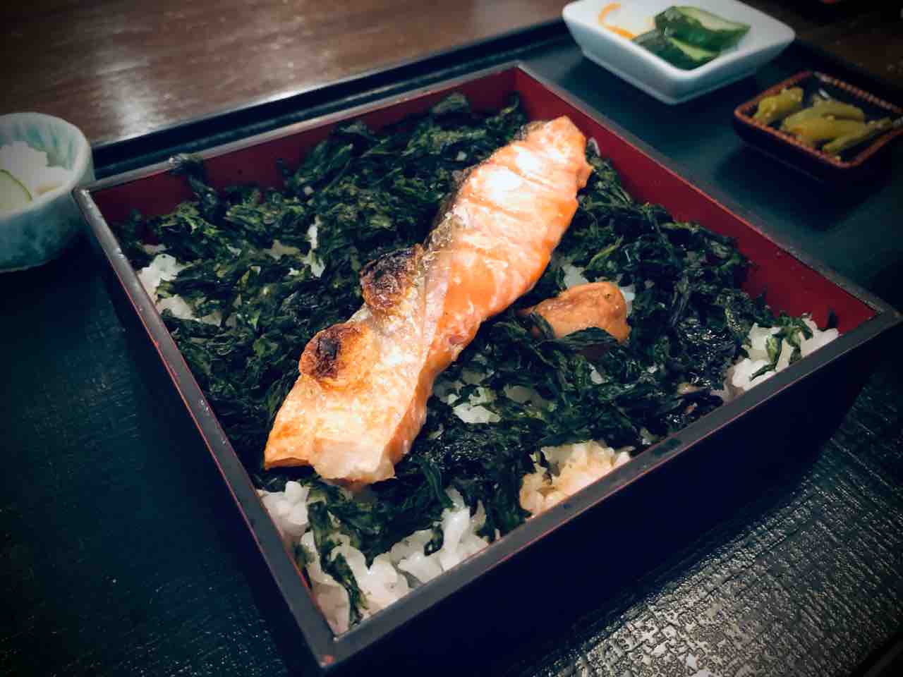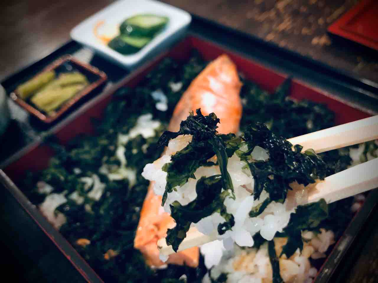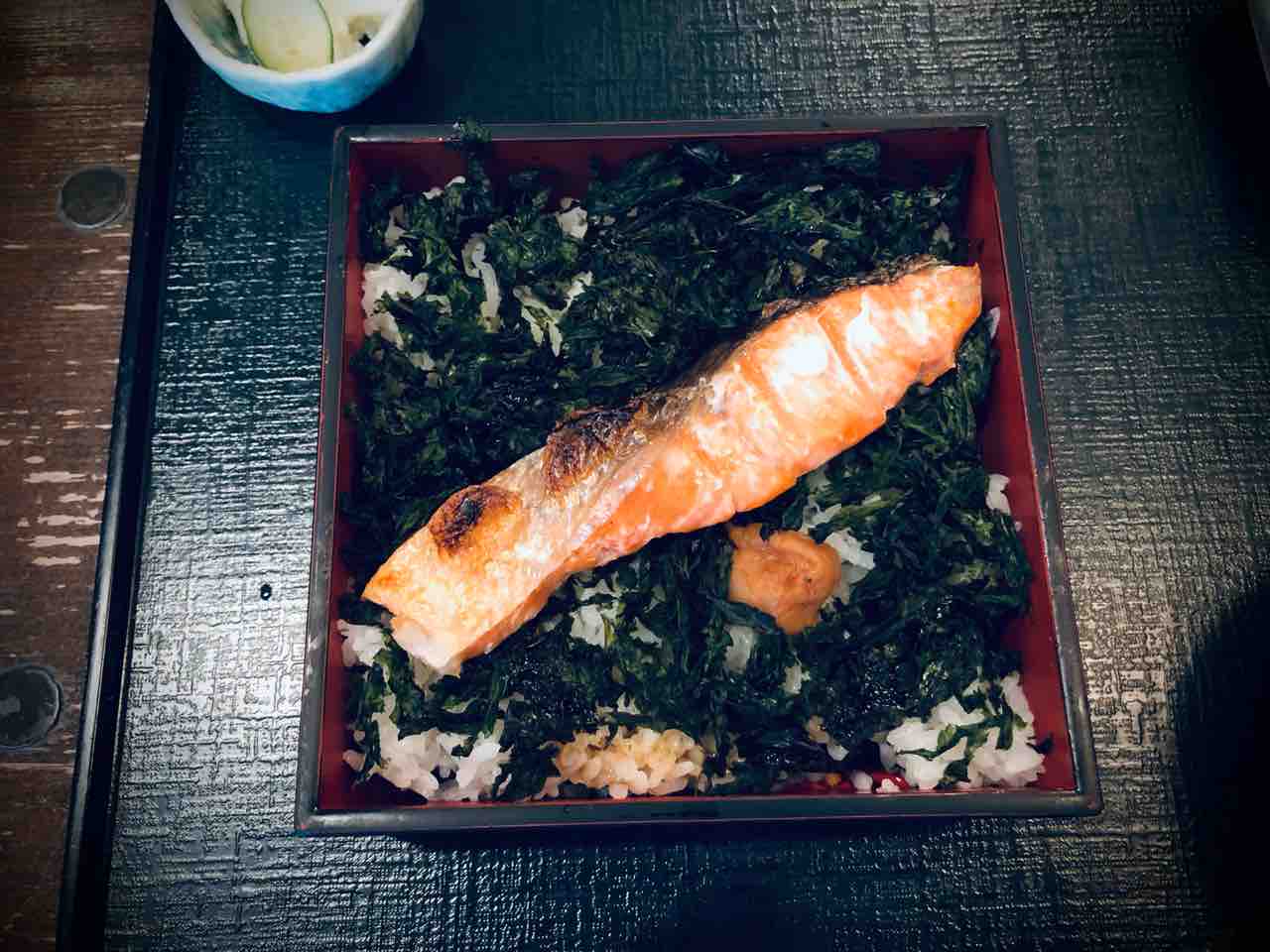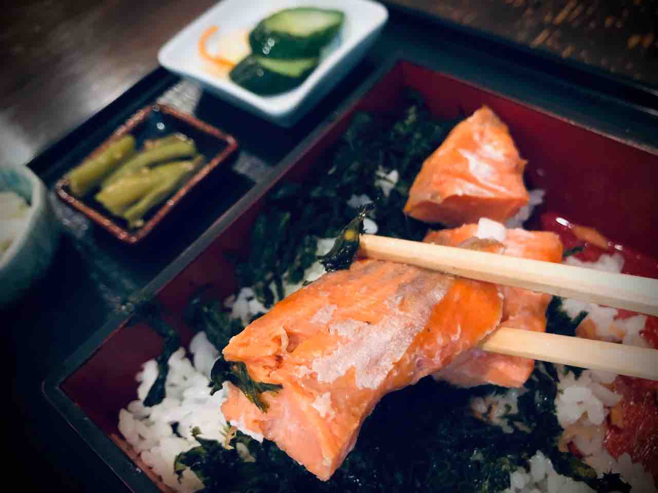 下の段には海苔ご飯に焼き鮭が乗っかっております。