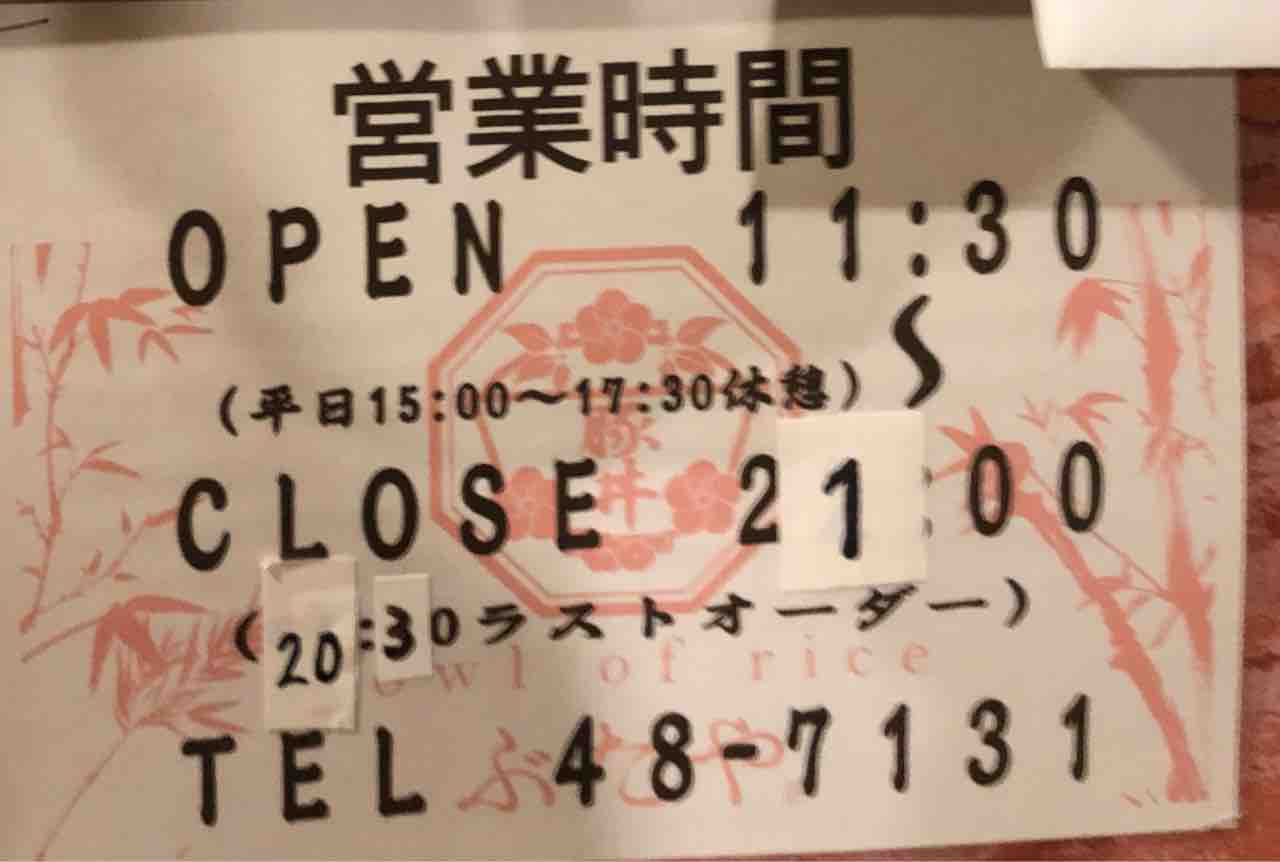 営業時間 11時30分〜21時(平日は15時〜17時30分休憩)