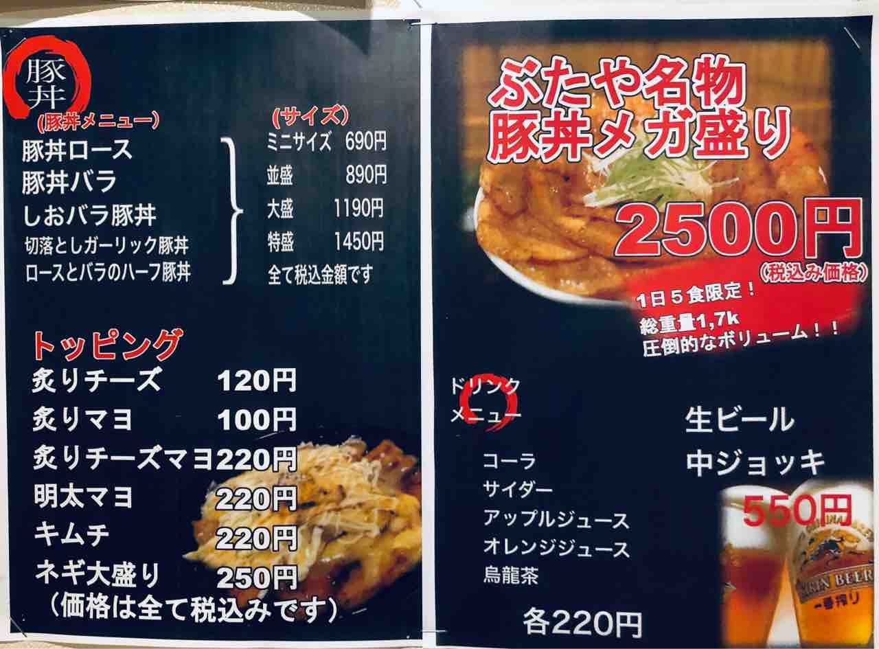 メニュー表です。 この日は豚丼メガ盛りにチャレンジしようと思っていたので注文すると SOLDOUTで頂くことが出来ずでしたので 何にしようかなと思うも