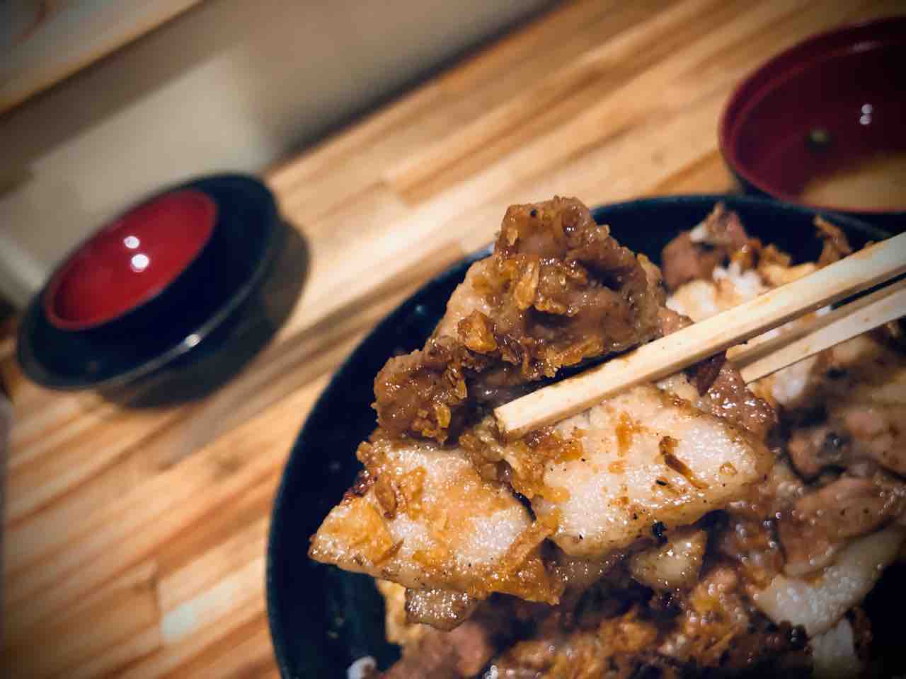 そして待つ事10分程で 切り落としガーリック豚丼が運ばれてきました。
