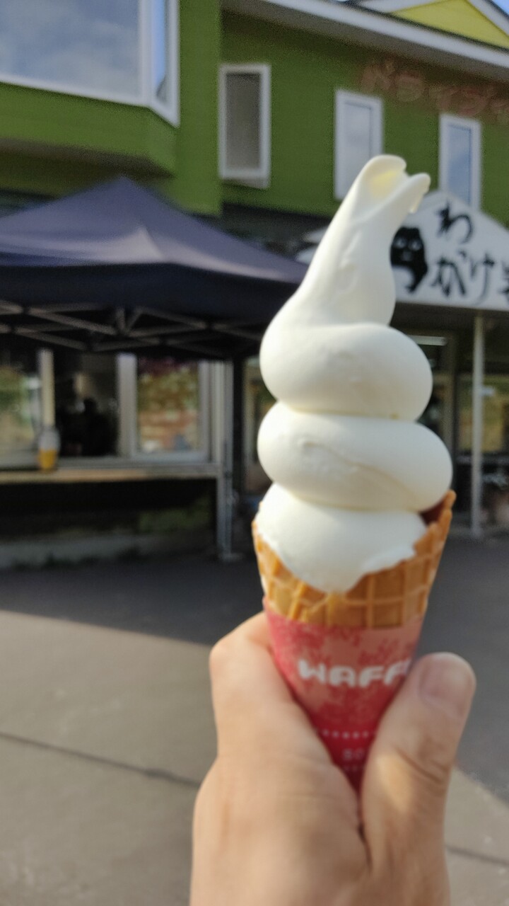 所謂もこもこソフトクリームです。では頂いてみます… 粘り気のある 味はよくあるソフトクリームミックスで強いて言えば 七飯町の野澤商店的な 脂っこいソフトクリームです。暑い日に頂くソフトクリームは3割増で美味しく頂けます。