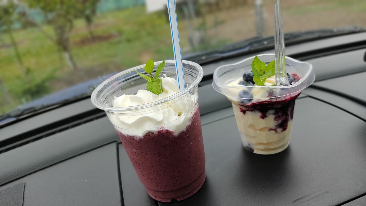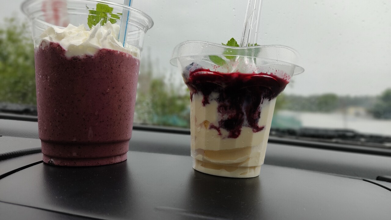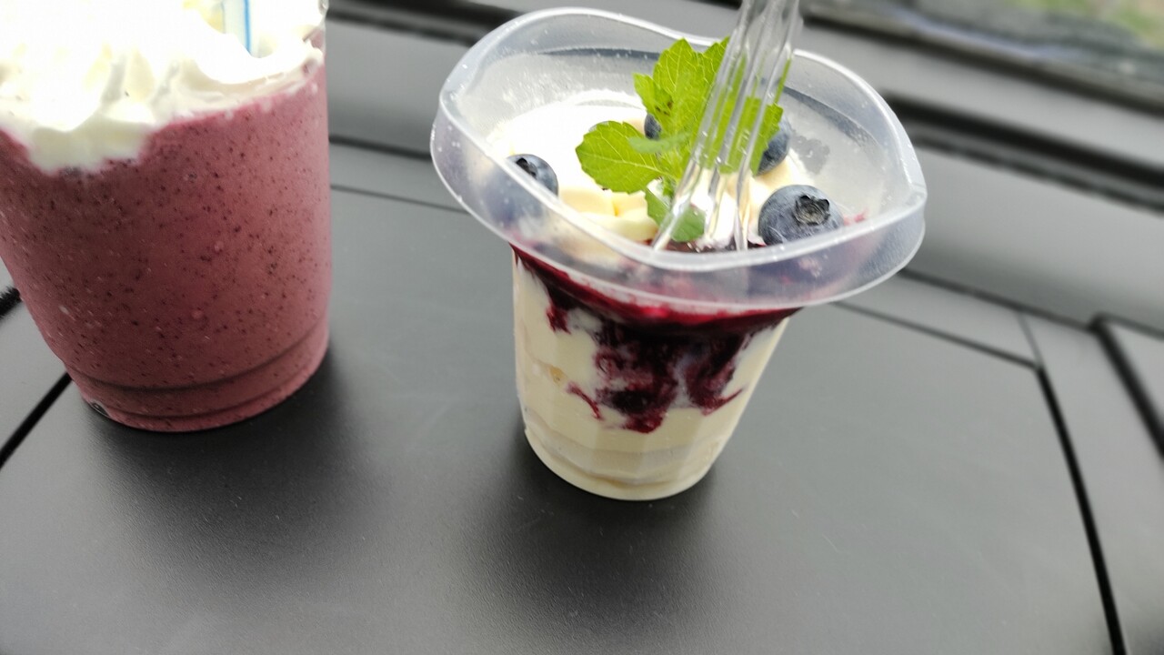 5分ほど待った後に 車までスムージーとデザートを持ってきてくれまして 受け取ったものがこちらになります。