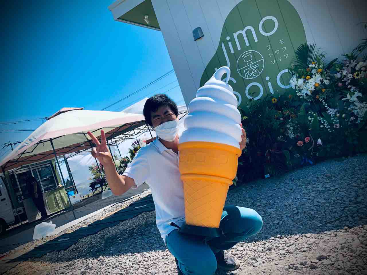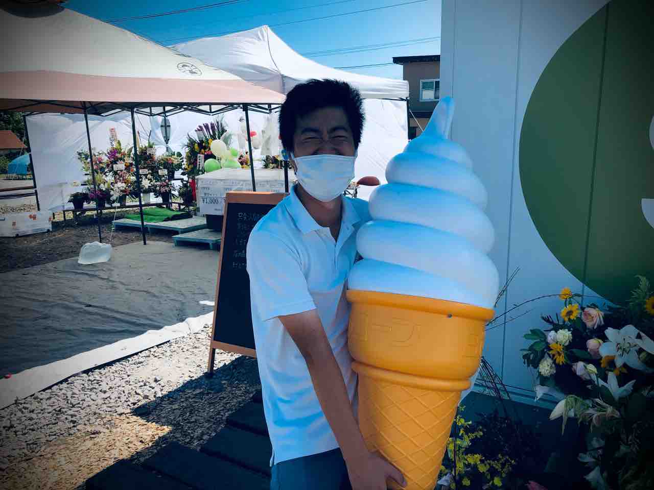 そして 移動販売車で道南を駆け巡っているK君に無茶ぶりをしてもらい 日陰でソフトクリームとツーショット