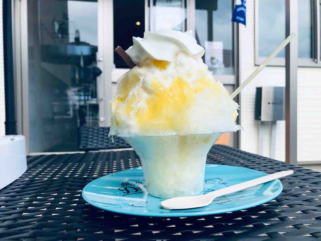 5分ほどするとカキ氷が完成しましたのでテラス席に移動します。