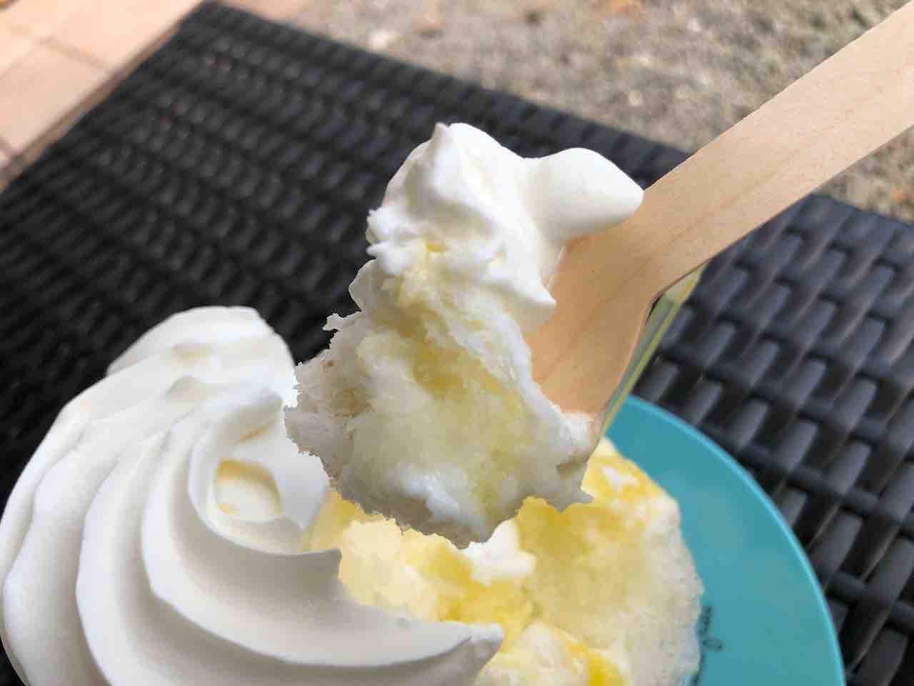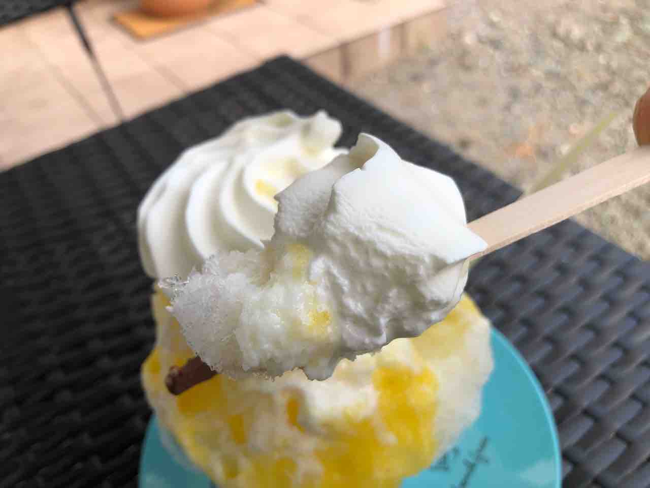 ホイップクリーム好きではないんですが このカキ氷の質感とパイナップルソースと合わさるのなら全余裕で美味しく頂けます。