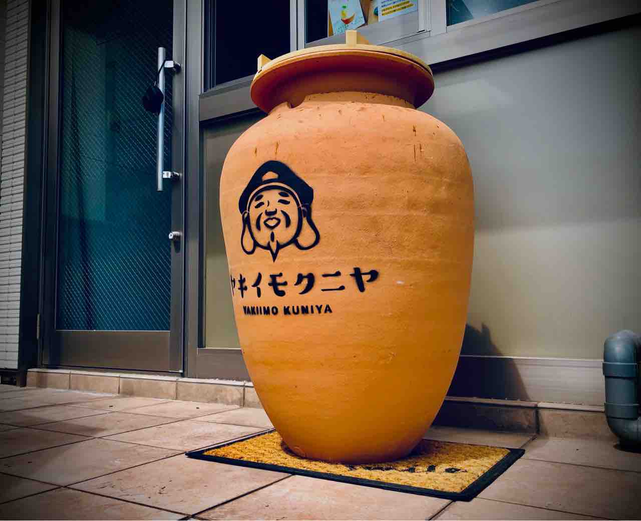 更には恵比寿様っぽいイラストがプリントされた壺が有りました。ヤキイモクニヤ インパクト大です。