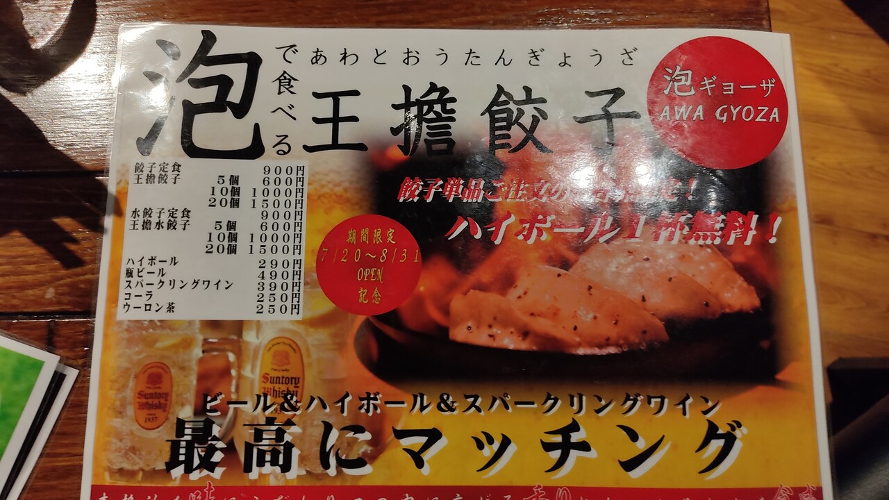 餃子を頼めばハイボール1杯無料…無料でハイボール1杯飲めるから頼む人多いんだろうなぁ…