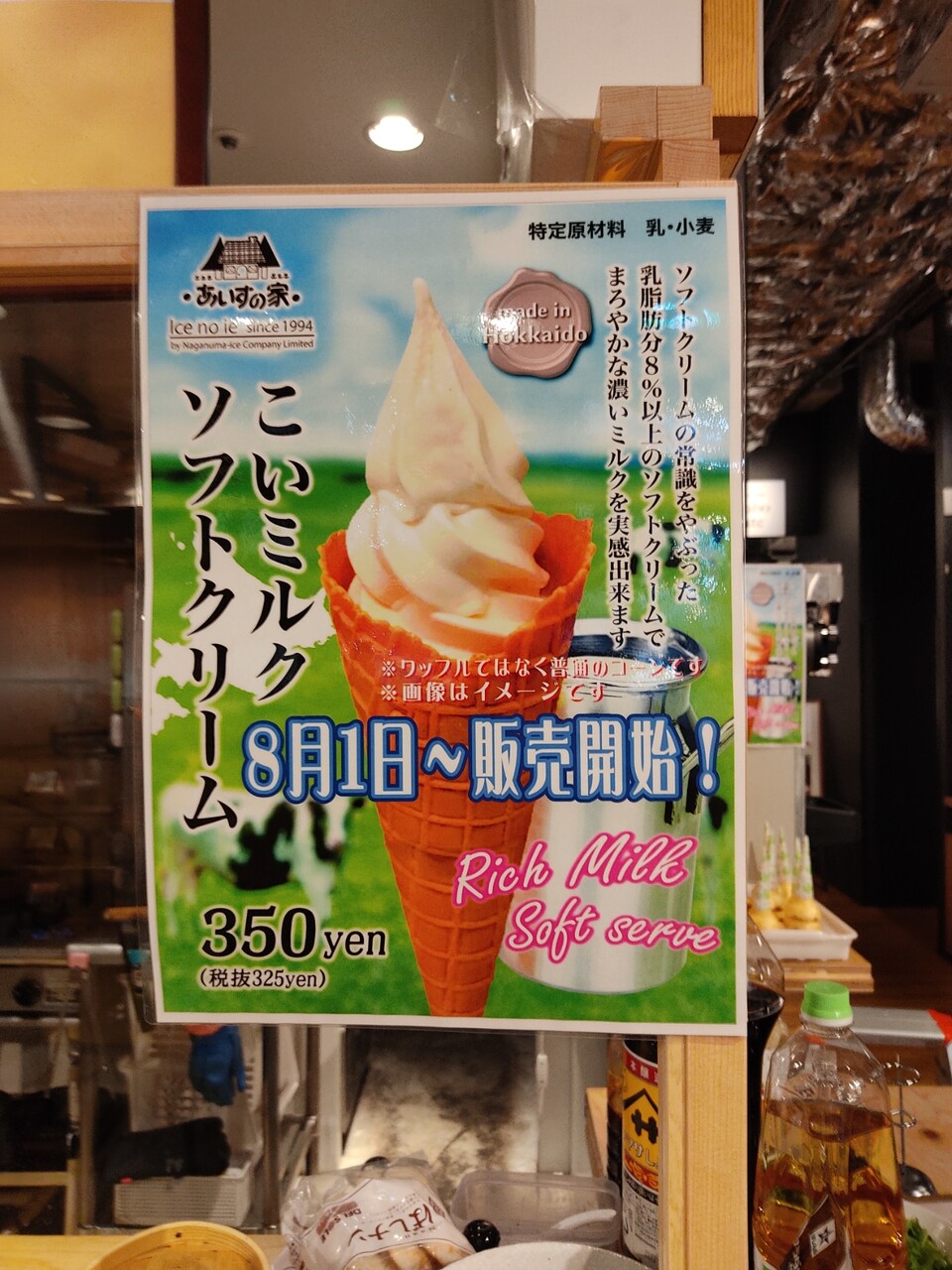 食後とくればデザートが欲しくなるもので 長沼街のあいすの家さんの こいミルクソフトクリーム (350円税込)をオーダーして