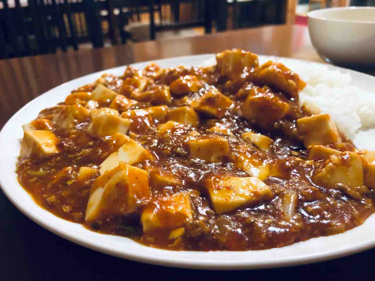 マーボ豆腐のスパイシーな香りが立ち込めます
