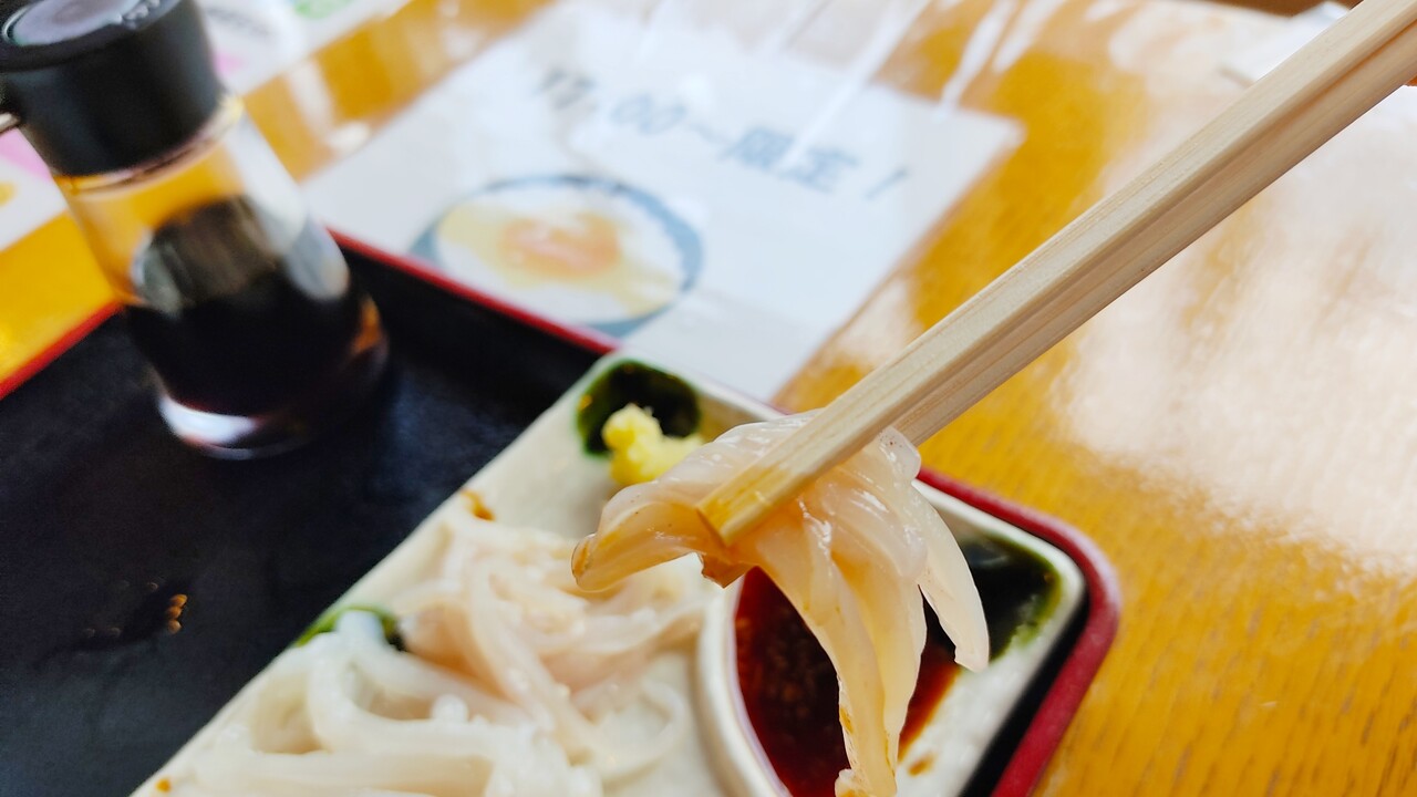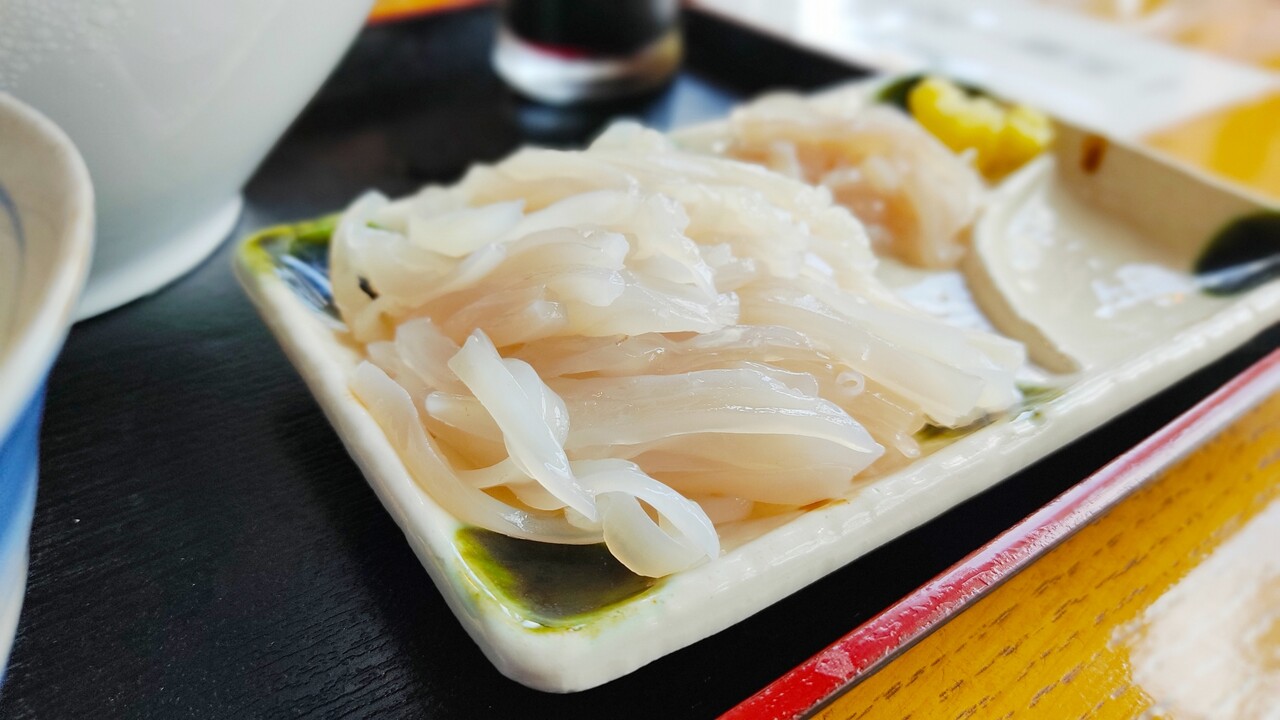 ラーメンそっちのけでイカ刺しを食べてしまいます…