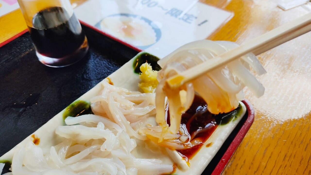 内容はラーメン、ご飯、イカ刺しの3点です。