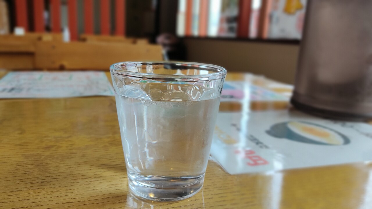 テーブル席に座し水を啜りイカ刺しセットを待ち焦がれます。