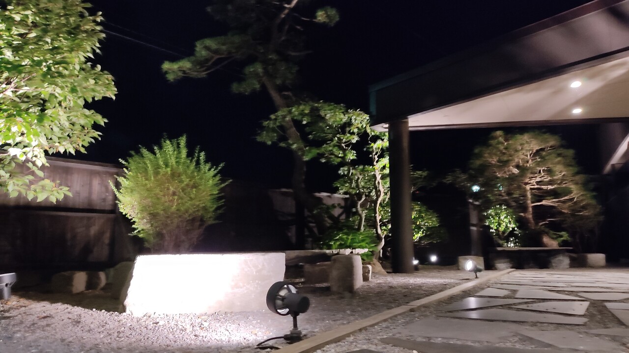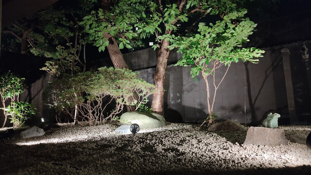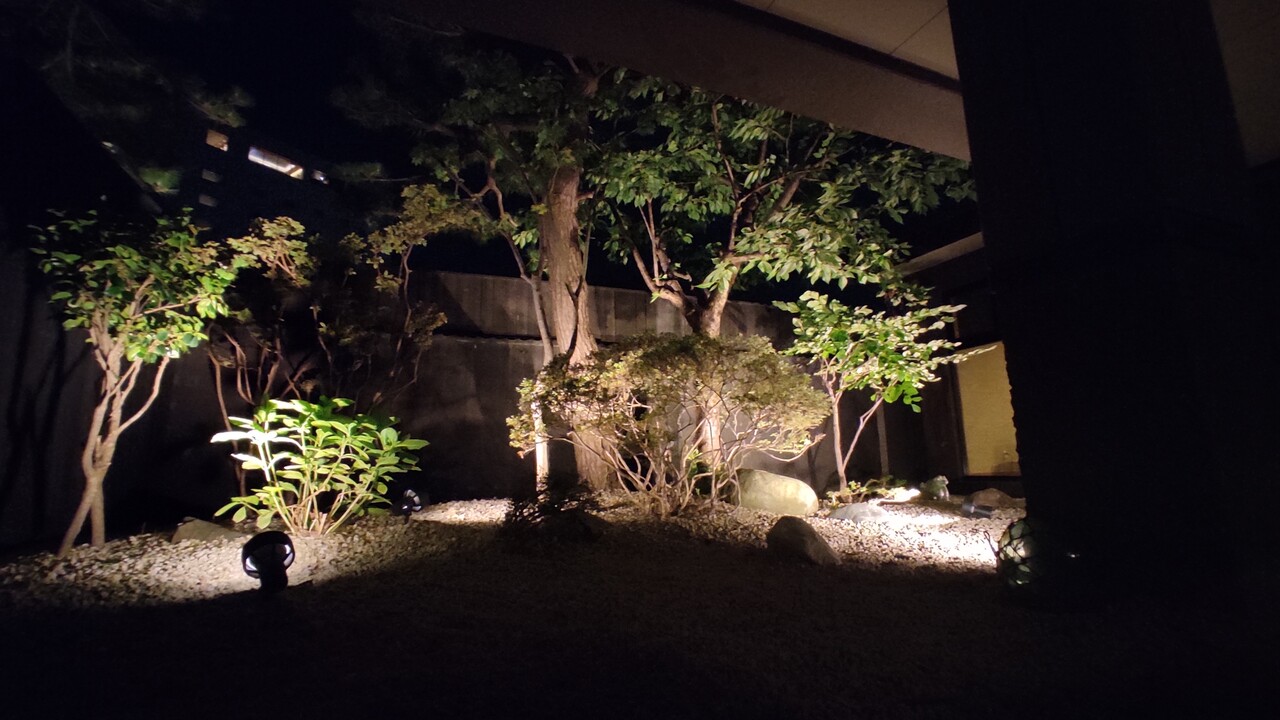 ライトアップされた庭園を見て心を落ち着かせました。