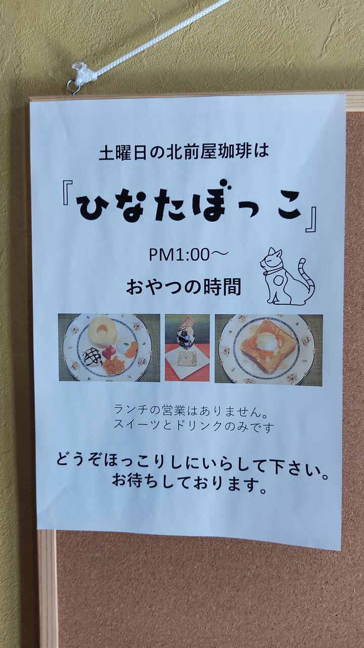 土曜には スイーツとドリンクの提供ださが ひなたぼっこ として別の方がお店を開いているということで時間があれば食べに行きたいなぁと思うのでした。