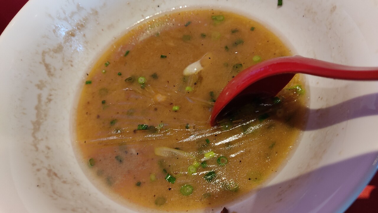 そんな事はどうでも良く ラーメンの丼を見ると油膜が形成されておりました。