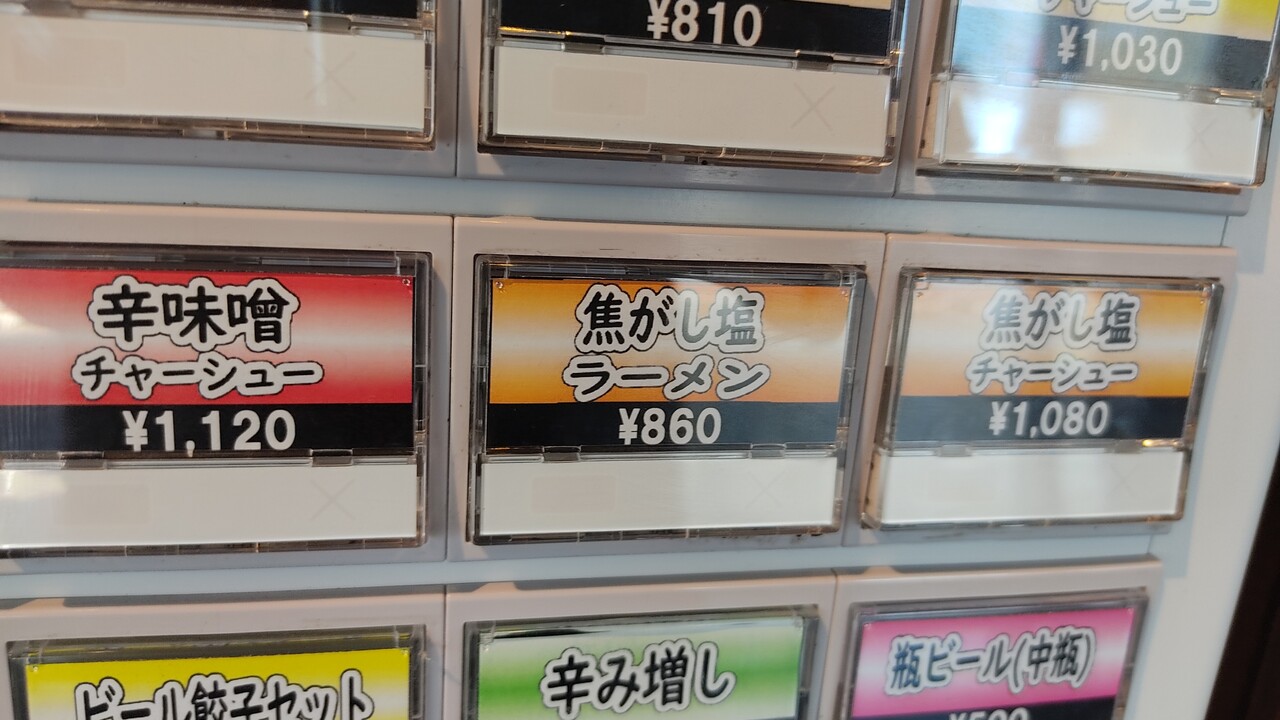 ラーメンは悩みましたが、焦がし塩ラーメン (860円税込)の食券を購入し