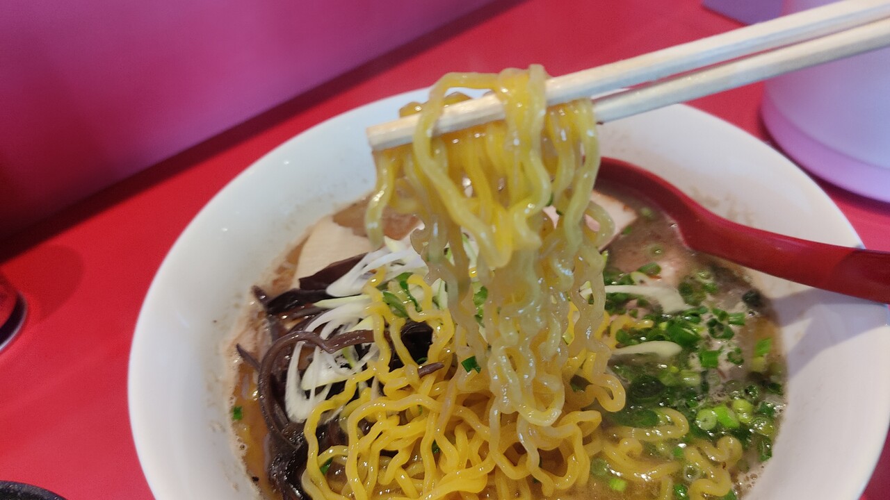 中太縮れ麺で結構脂っこいスープが絡まり、麺は気持ち硬め?コシのある麺で美味しく頂けます。