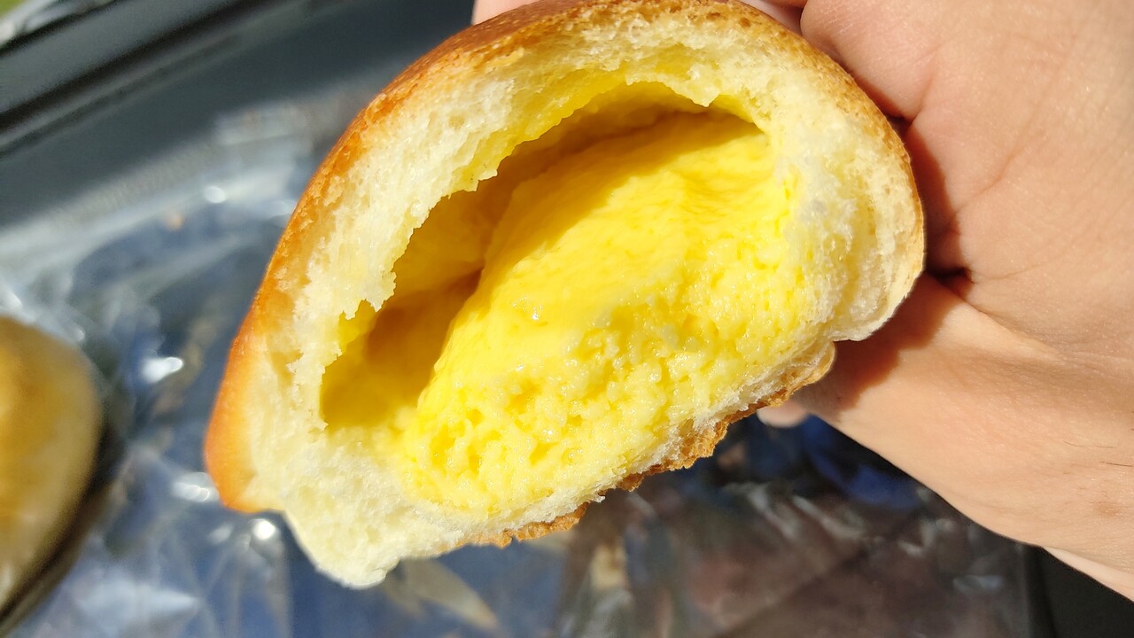中のカスタードクリームは ふわっと柔らかく卵黄を感じる甘さも程よい ばりばり美味いクリームパンです。近場ならリピートしまくってしまいそうなレベルでハマります。