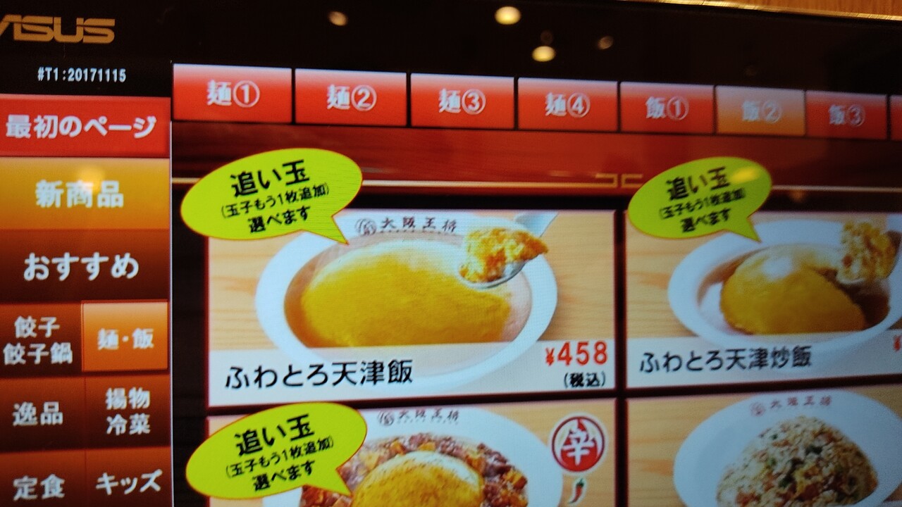 入店しまして 気になっていたメニュー ふわとろ天津飯 追い玉 (458円税込)をタブレットでオーダーをし