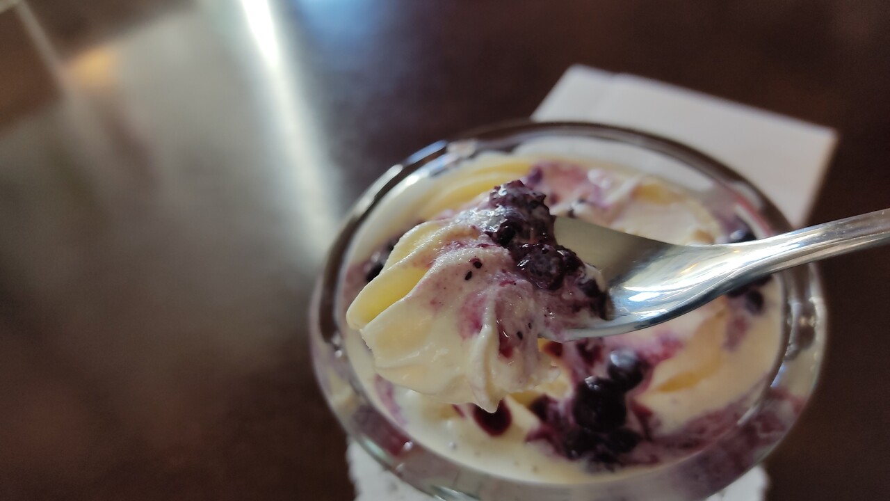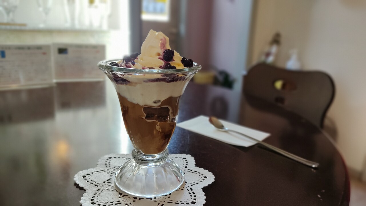 アイスクリーム、ベリー系のソース、珈琲ゼリーの内容になります。