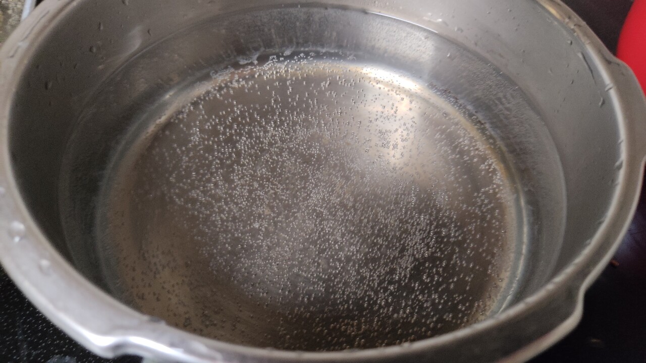その間に湯を用意しまして 汚れと滑りを取った 白子を鍋に少量づつ投入します。一度に投入すると温度が急激に下がる為。