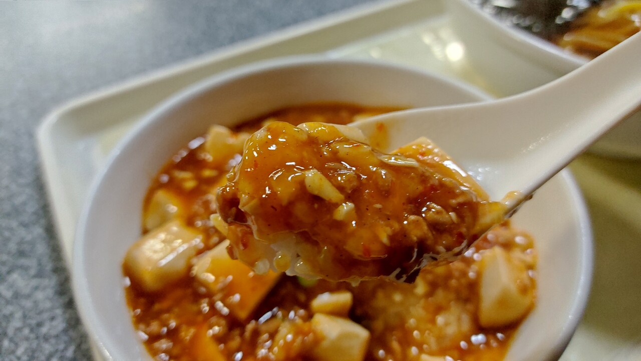 口に入れると まぁまぁ辛く程よい感じで 豆腐もプルプルっとしており 美味しく頂けます。フルサイズは要らないけれども ミニサイズならちょうど良く美味しく食べられました。