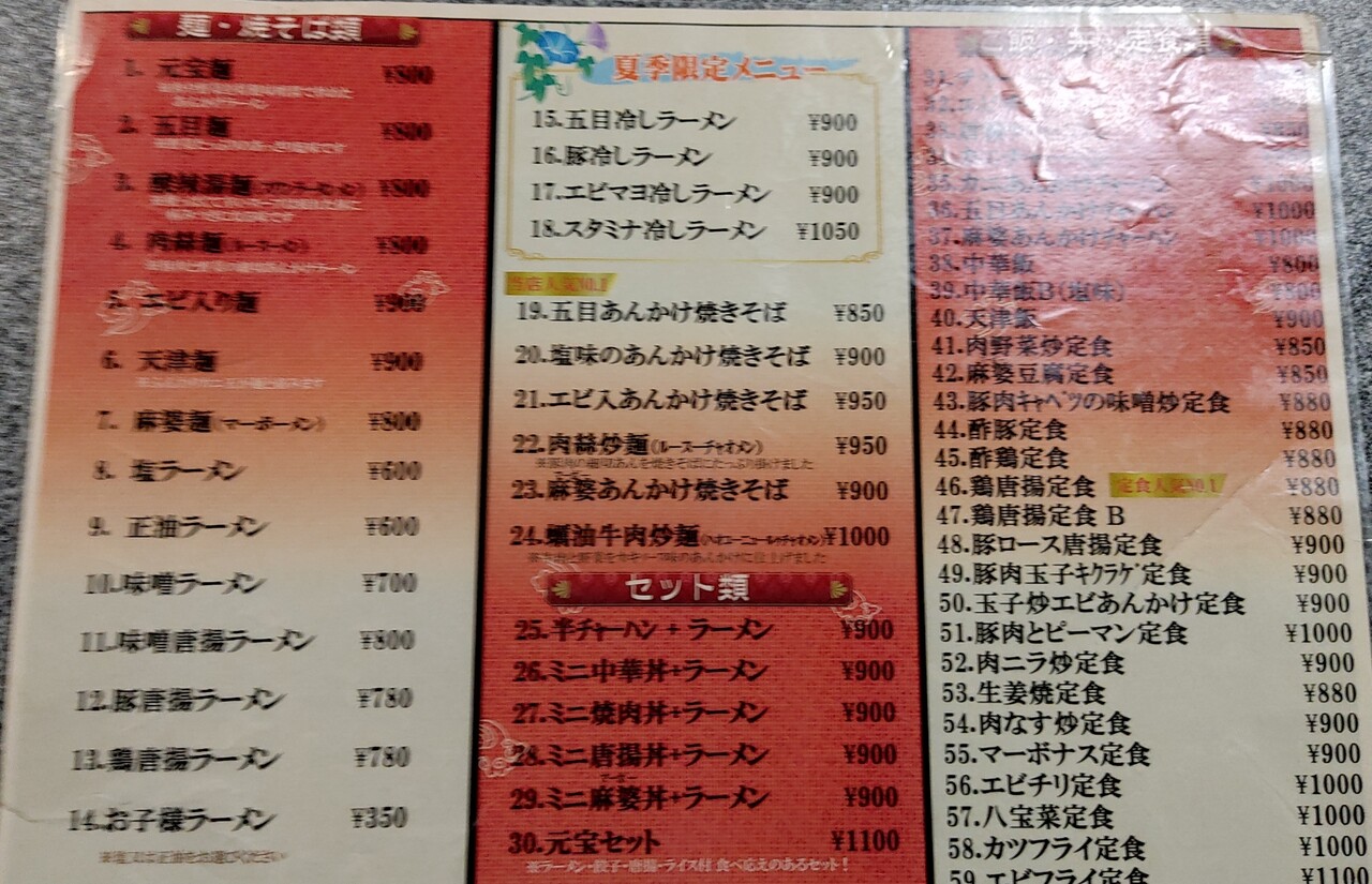 麺類、定食、一品料理とありますが