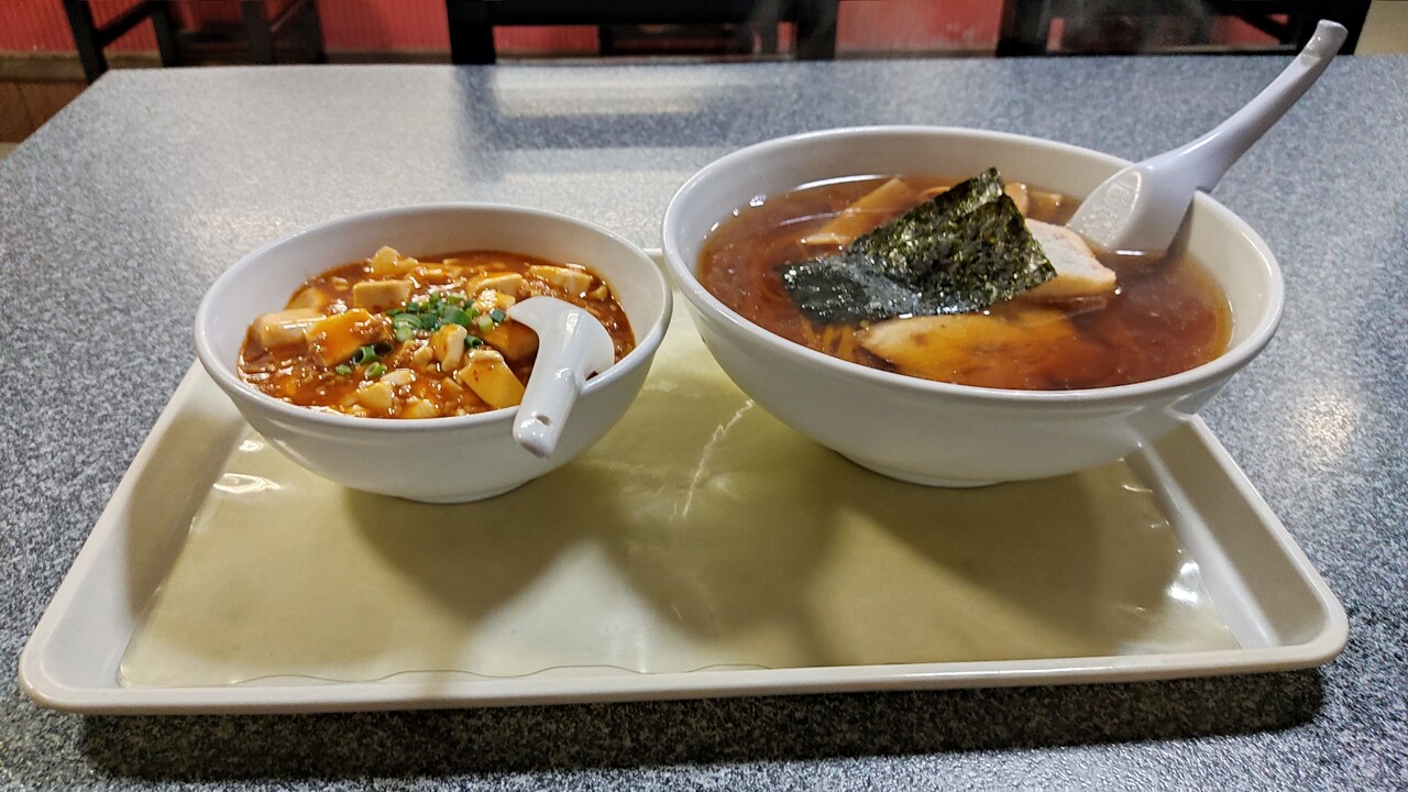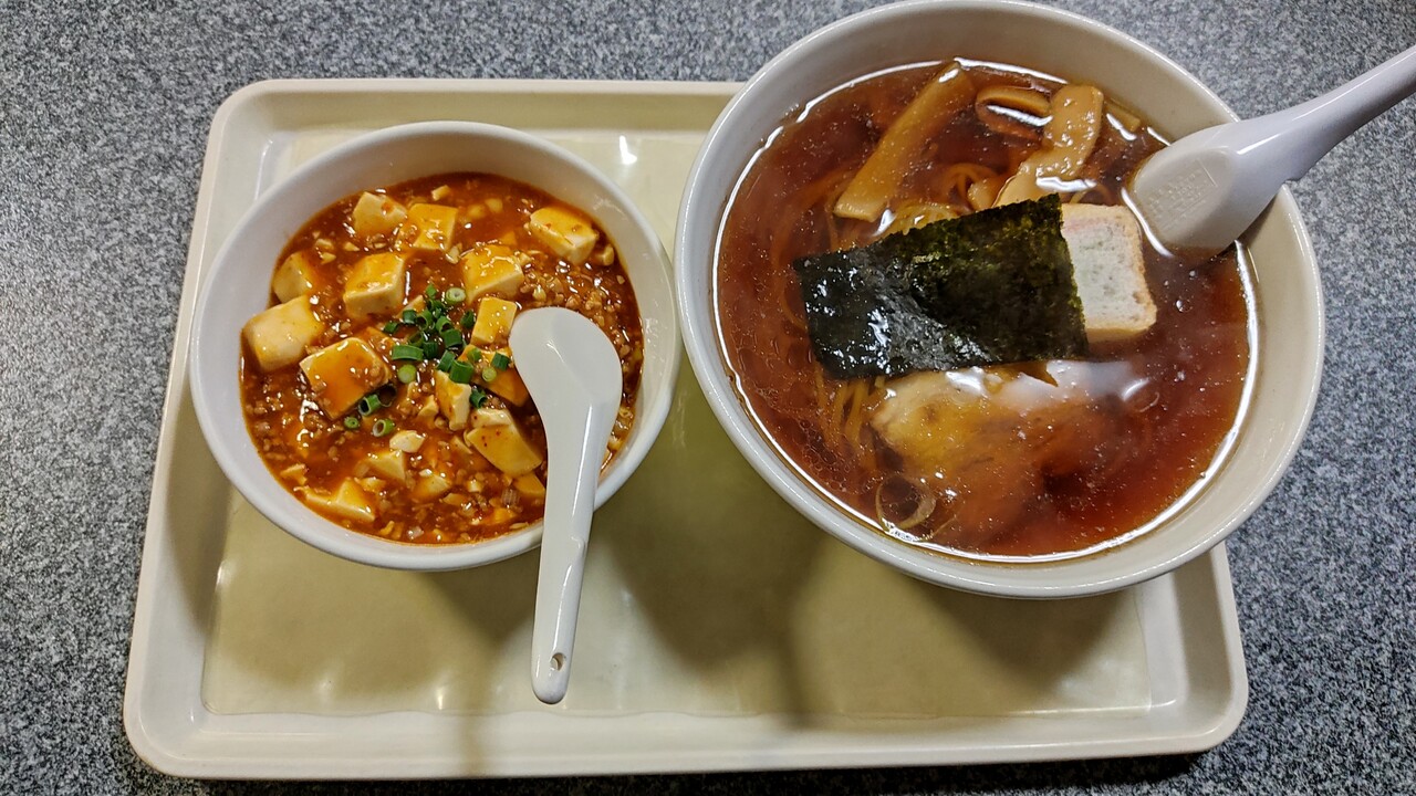 ミニ麻婆丼+醤油ラーメン が運ばれてきました。