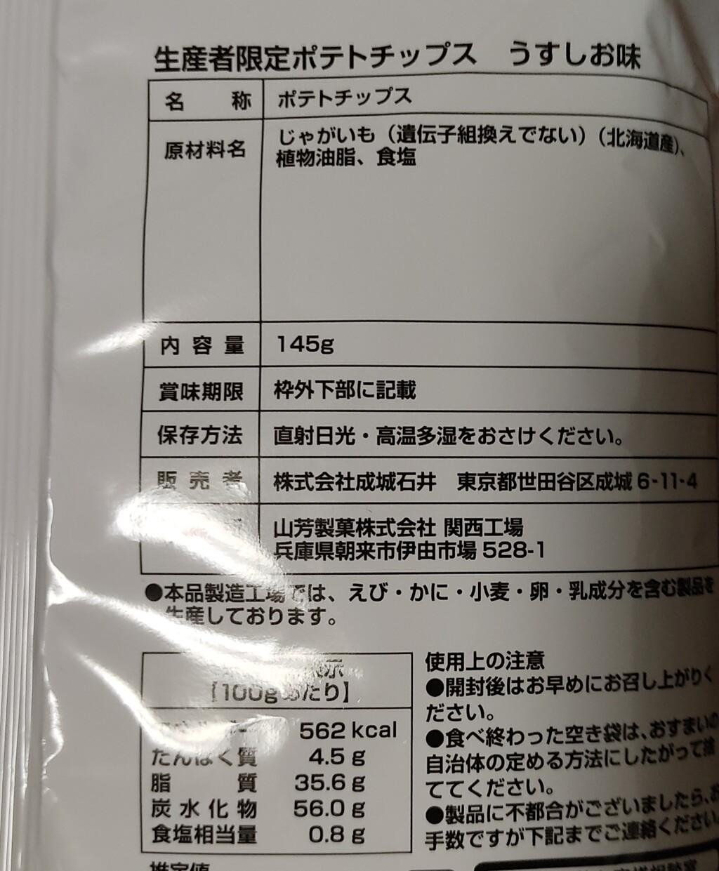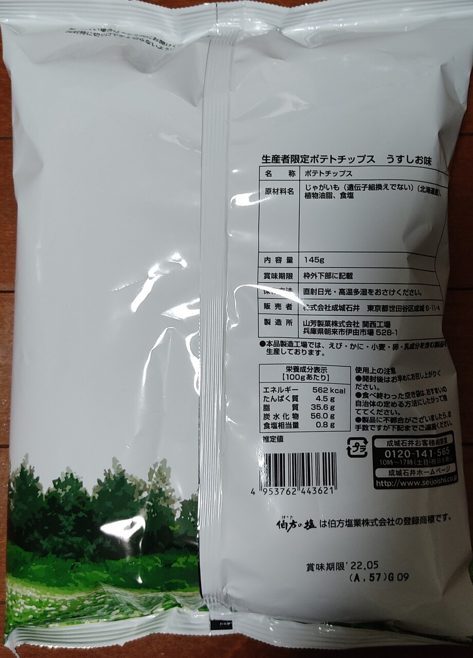 そのポテトチップスは 成城石井の生産者限定ポテトチップス うすしお味 (280円)でした。