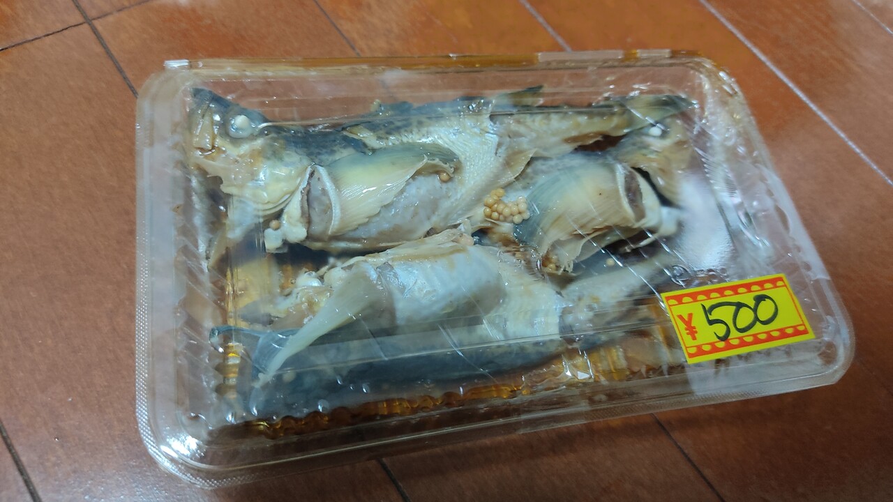 そして店頭にハタハタの煮付けがあったんですが 頂いてしまいました。実は小板商店では生きたハタハタの雄も購入しておりまして そちらは唐揚げで食べましたが 結果美味しく頂けました。