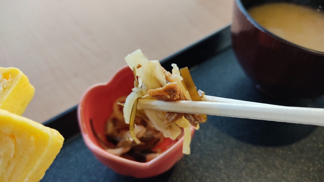 小鉢の切り干し大根を口休めとして ほんのり甘い味付けで美味しく頂けます。