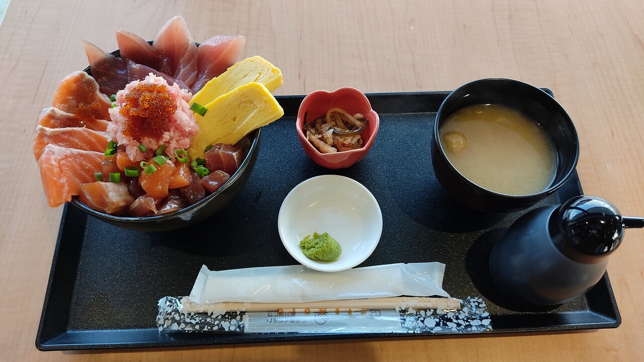 とある日に 七飯町の道の駅 なないろ・ななえ に立ち寄りまして正直お手洗いを拝借程度で立ち寄ったのですが 折角なので何か食べていきましょうかという事で どんぶり屋甲さんで 海鮮丼をキメておく事にしました。