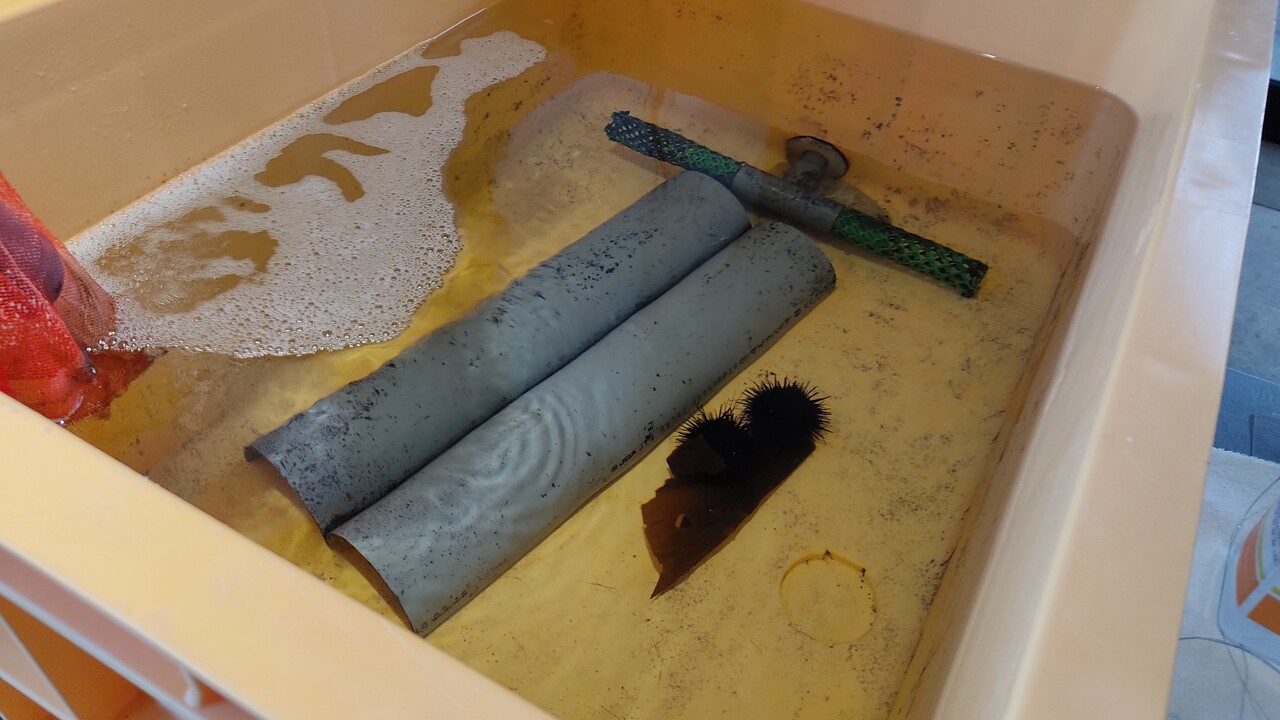 取り敢えず 海鮮の甲 海鮮4種丼 (1,000園税込)をオーダーし 呼び出し呼び出しブザーを渡され生簀を覗くと雲丹が2体存在しており