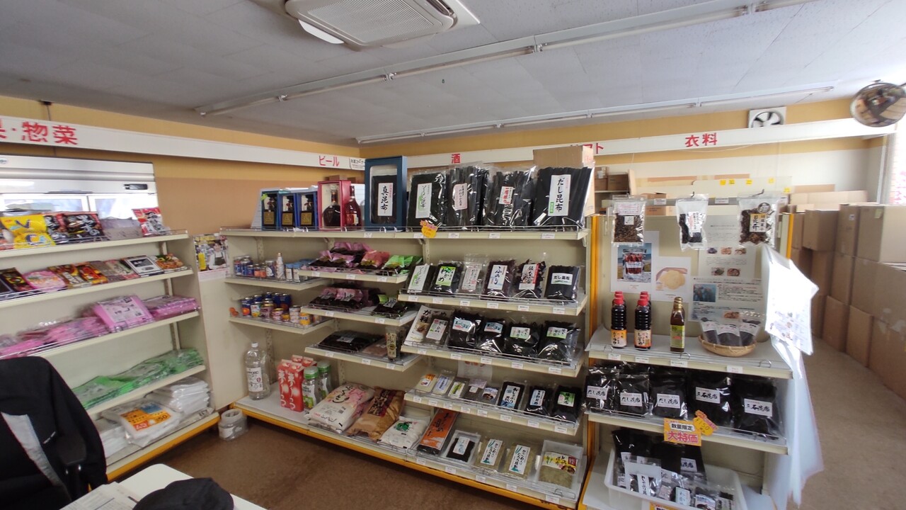 入店しますと正面にはお菓子生活雑貨などが陳列されております。その横には御目当ての昆布製品が並べられておりました。