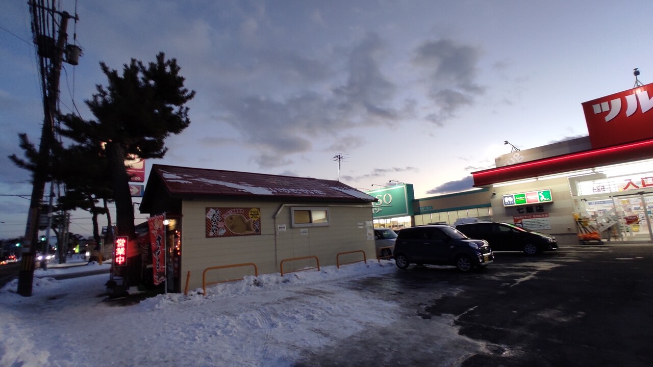 赤松街道沿いの DAISOとツルハドラッグストアの駐車場境界線にある店舗です。