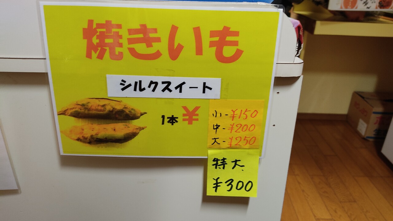 御目当てのやきいも(シルクスイート)の貼り紙もありますので入店していきましょう…
