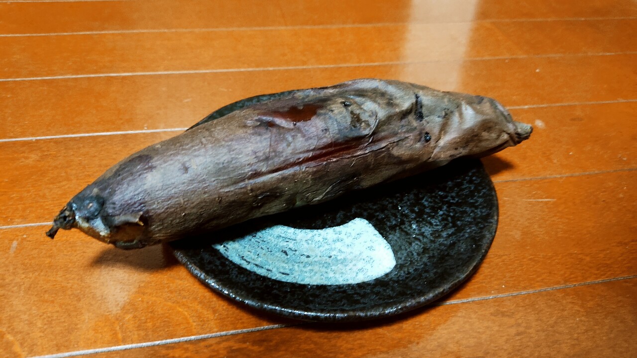 まさかの冷凍したたこ焼きを油で熱する仕様でした。ともあれやきいも (特大 300園税込)と たこ焼き (450円税込)を購入し家に持ち帰ります。