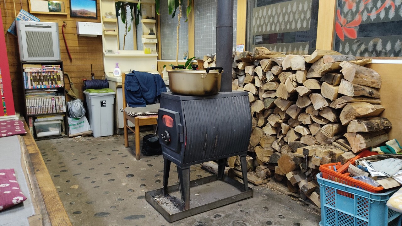 なんと薪ストーブも有りまして店内は暖かいんです。