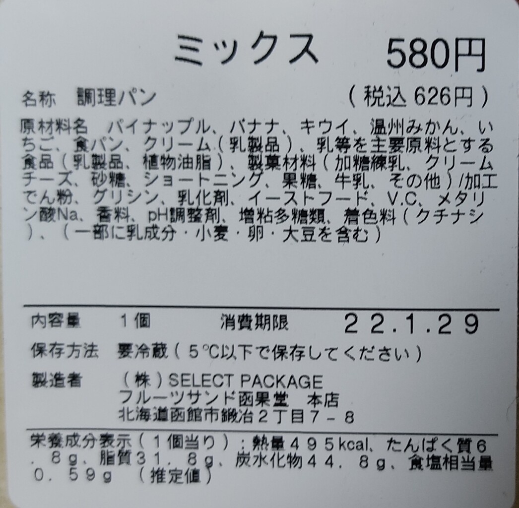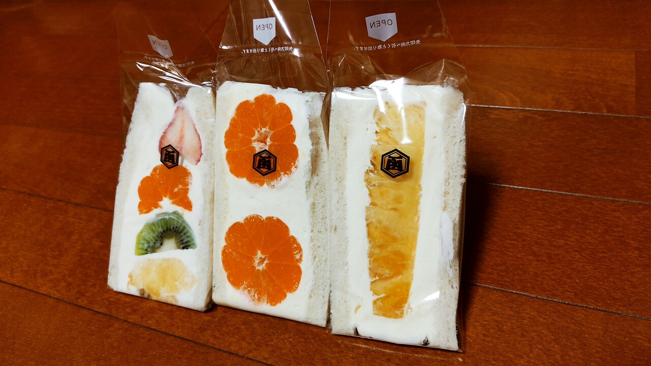 って事で購入したものは パイナップル (540円税込)、温州みかん(648円税込)、ミックス(626円税込)のフルーツサンドになります。