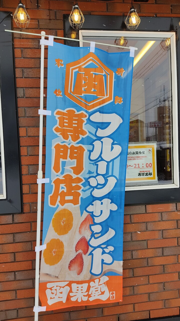 フルーツサンド専門店 函果堂 さんの幟が立っております。