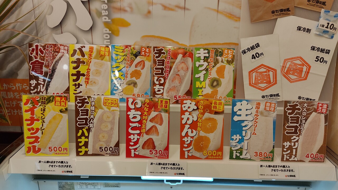 入店しますと店舗の奥にフルーツサンドの冷蔵庫が御座います。