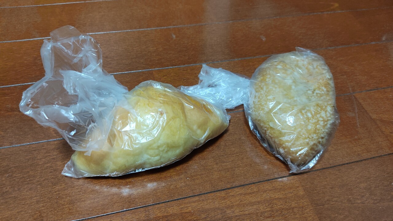 そしてパンも開封していきましょう。バターロールとニラカレーパン