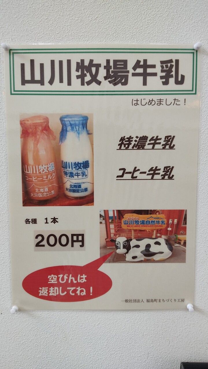 温泉を上がりまして 飲み物をと見てみると 山川牧場牛乳(200円税込)がありましたので購入します