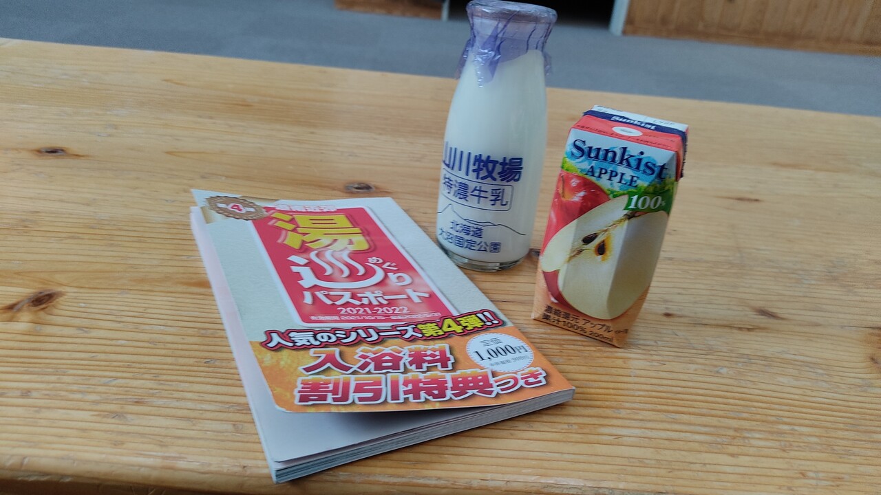 そして湯巡りパスポートを持っており 当温泉はジュース1つサービスというこでアップルジュースを頂きました。