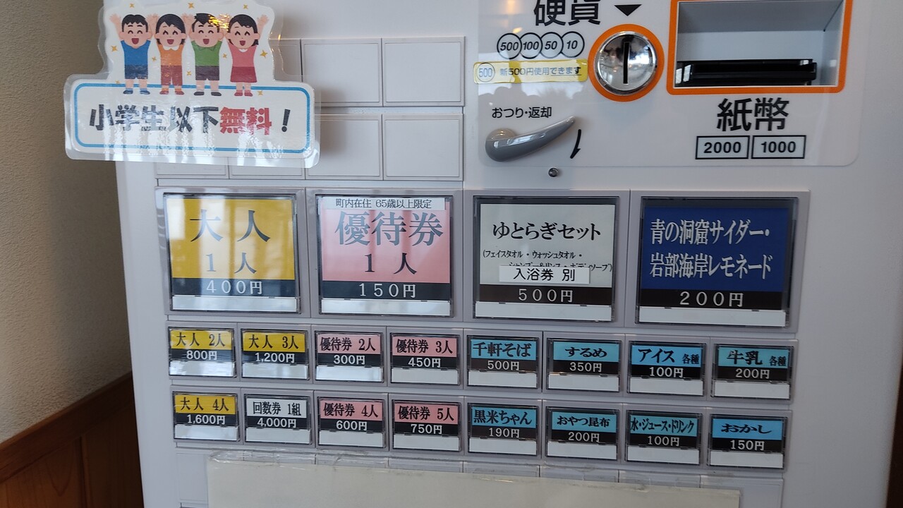 券売機にて入浴料 400円を支払い