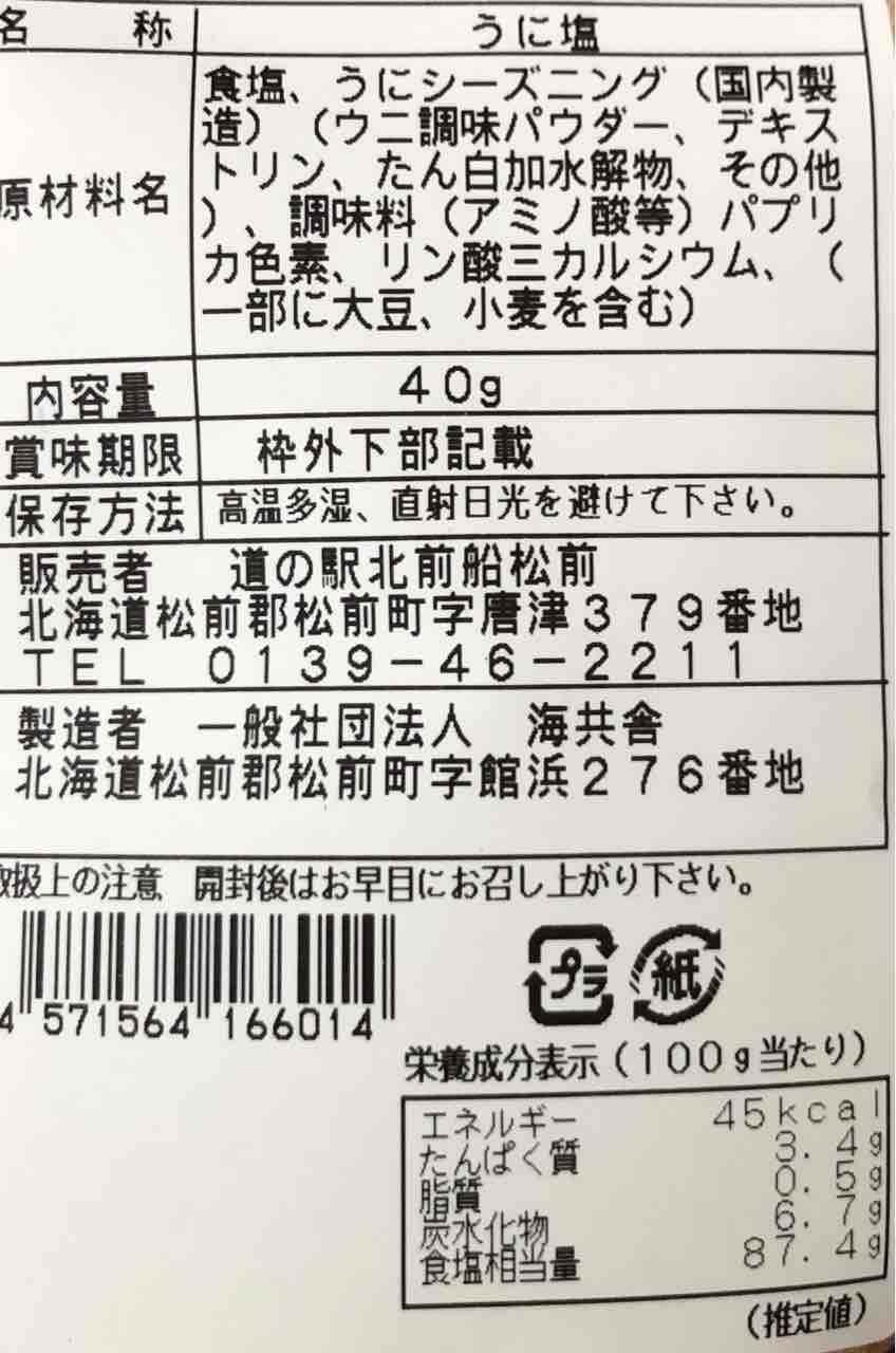 あと折角松前町きたので何かを購入しようと思い… 入館時に気になった うに塩(350円税込)を買ってみました。