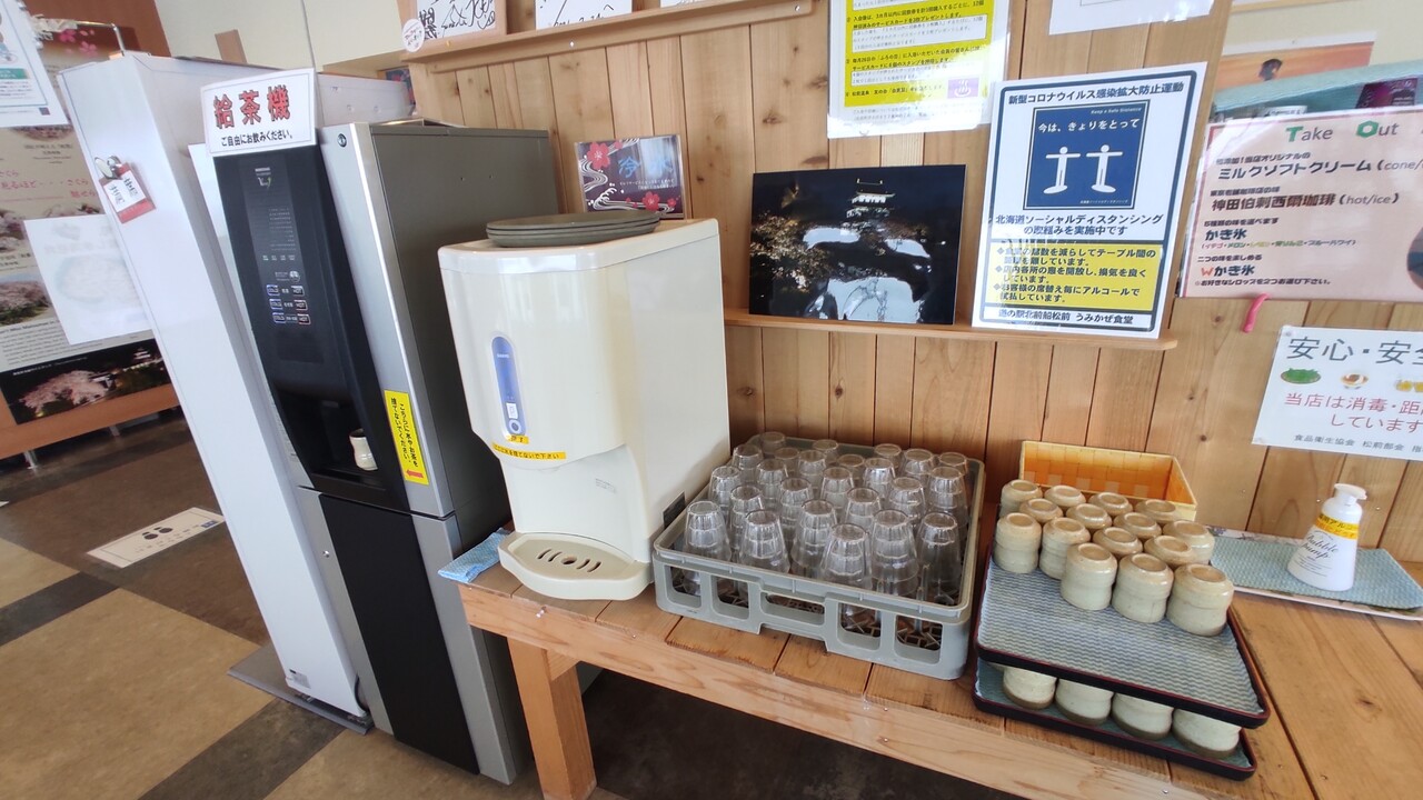 食券を買いセルフでお茶とお水をGETし