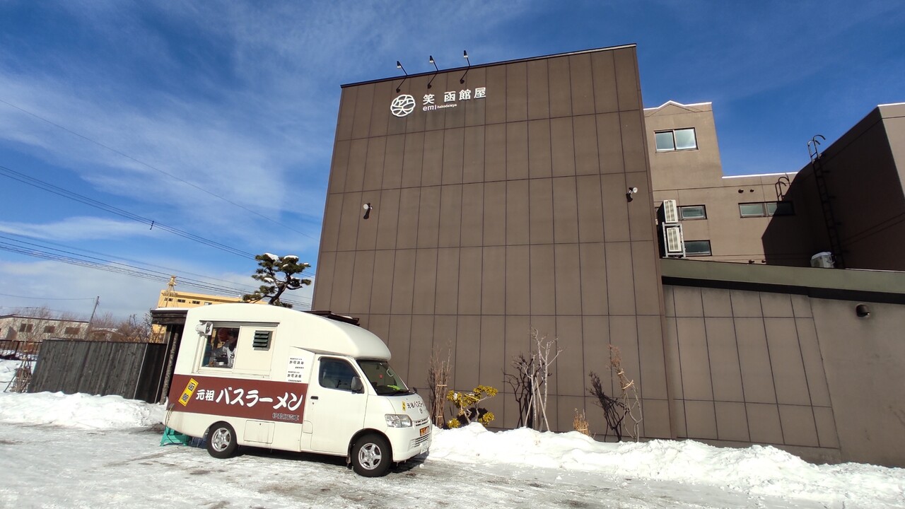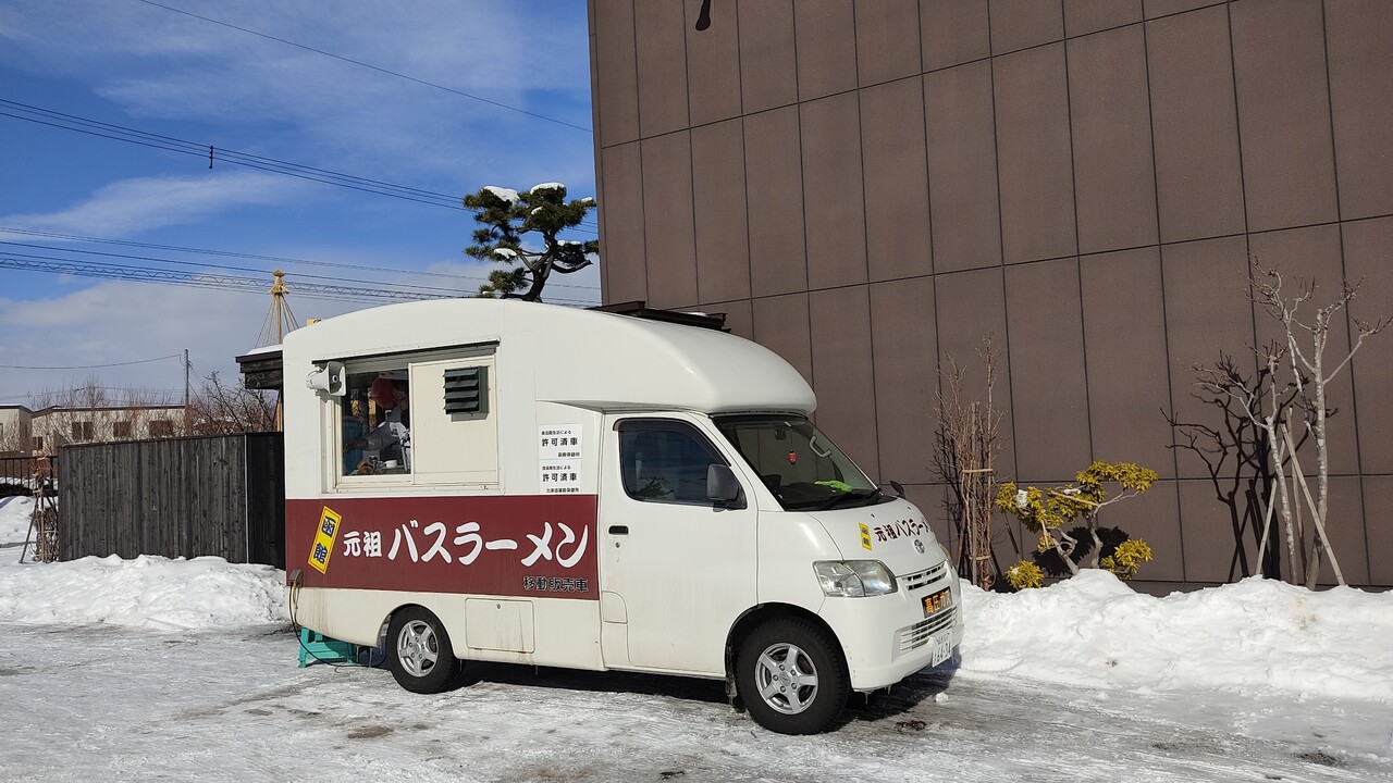 はい入り口には 元祖函館バスラーメンの移動販売車が留まっております。